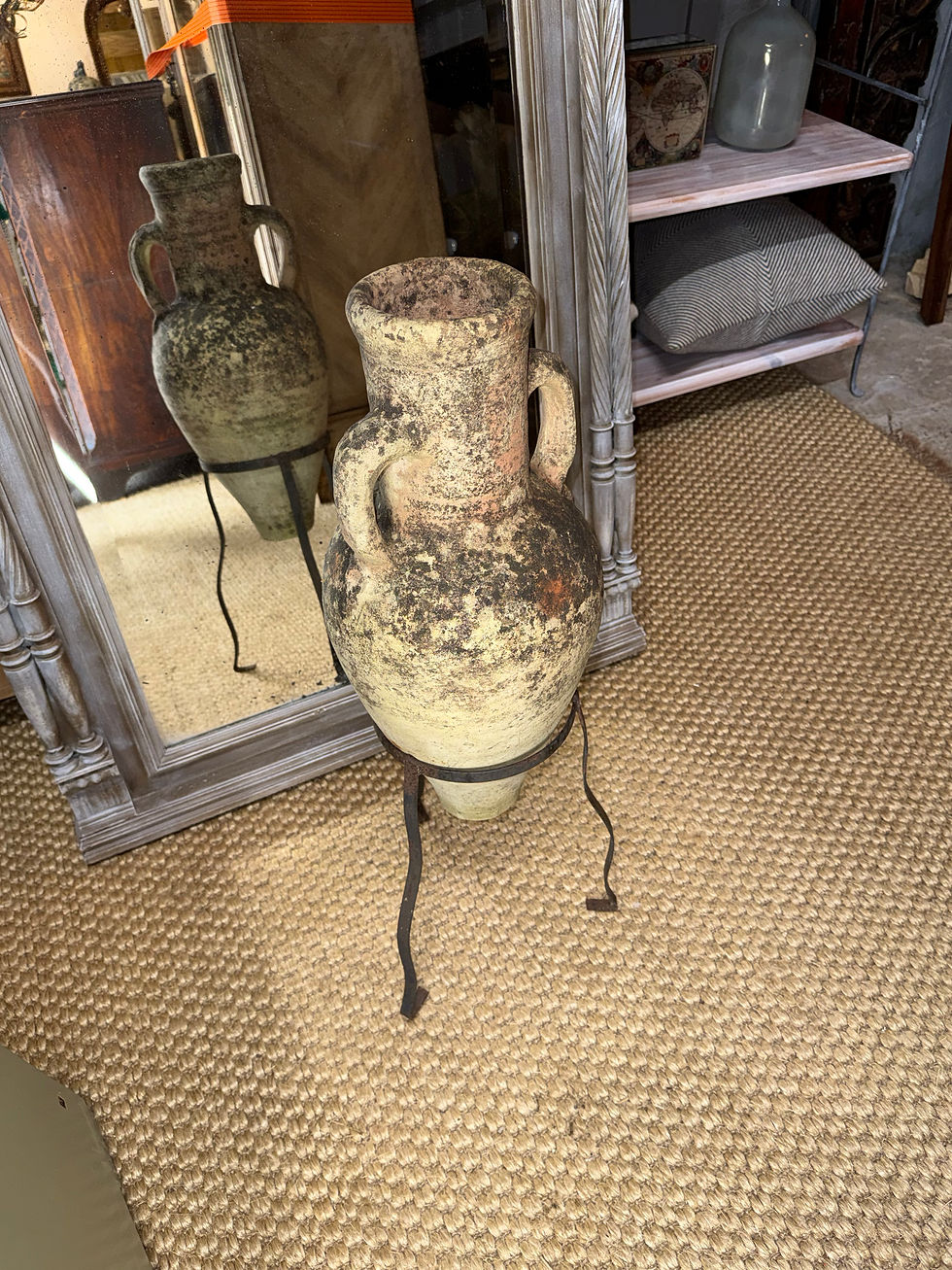 Olive Urn on Metal Stand Terracotta Pottery Amphora